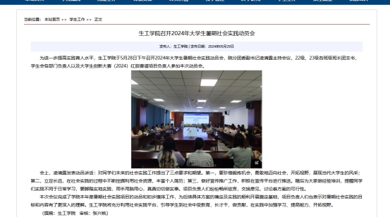 在为期两个月的社会实践中,我院师生协力同心,脚踏实地,开展了多姿多彩的社会实践活动,层次明、范围广。全院参与社会实践的同学共174名,他们组建了24支暑期社会实践团队以及21名学生参与个人实践,足迹遍布全国6个省份,学生们在活动中感悟红色精神,落实争先创优精神,展现生工学子风采受到了广泛好评,产生了良好的社会反响。
