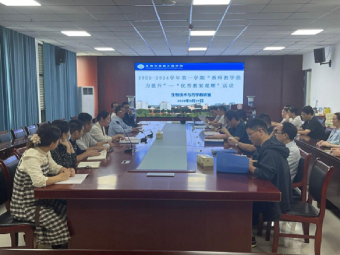 为了提升青年教师教学能力,不断提高教学质量,按照宿州学院《关于开展2023-2024学年度第一学期“教师教学能力提升”活动的通知》(教务处发〔2023〕60号)和《关于开展2023年宿州学院“教案评比”“优秀教案观摩”活动的通知(教务处〔2023〕76号)》要求,2023年9月27日下午,伟德国际1946源自英国开展了2023-2024学年度第一学期“教师教学能力提升”--“优秀教案观摩”活动,参加人员有院长张兴桃、学院督导委员会成员、食品科学教研室主任、生物技术与药学教研室主任以及近三年新进青年教师,活动由副院长王海潮主持。