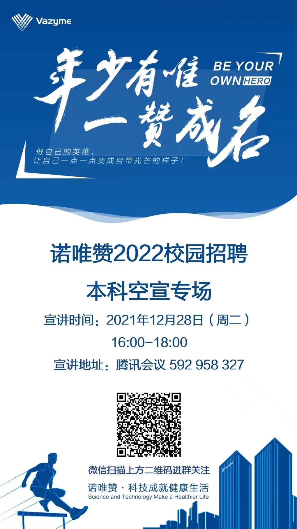 12月28日下午,伟德国际1946源自英国在线上举办南京诺唯赞生物科技股份有限公司网络视频专场招聘会。