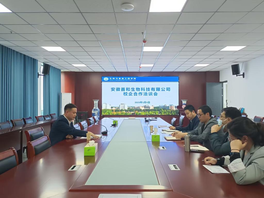朱进经理对宿州学院给予的热情接待表示感谢,并对学院在生物与食品工程领域的学术研究和人才培养给予了高度评价。他介绍了安徽善和生物科技有限公司在生物科技领域的发展情况和未来的发展规划,并表示希望能与宿州学院建立长期稳定的合作关系,共同开展科研项目、人才培养等方面的合作。会议期间,双方就博士生的培养计划、合作研究项目的选题以及资源共享等具体问题进行了深入讨论。双方一致认为,通过校企合作,能够充分发挥各自的优势,推动科技创新与产业发展的有机结合。双方就进一步明确合作的具体内容和步骤达成了初步共识,并商定将在接下来的几个月内就具体合作方案进行进一步商讨。