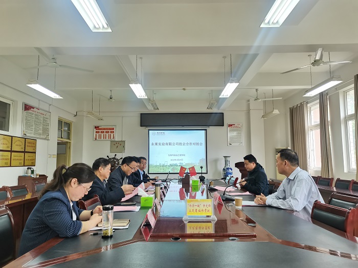 洽谈会开始,张兴桃首先对各位嘉宾的到来表示热烈的欢迎。对学院的办学特色、食品专业建设、师资队伍、人才培养、科研研究,成果转化等方面进行了简要介绍。他表示希望双方通过对接交流,抢抓战略机遇,一起在科技创新、成果转化、人才培养等方面寻求合作契机,进一步加强协同,发挥学校和企业双方优势,在农产品加工领域深化交流合作。