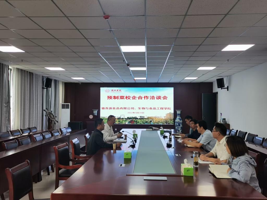 2022年9月20日上午,徽香源食品有限公司总经理程迎九、人事总经理韩立杰到伟德国际1946源自英国洽谈预制菜校企合作事宜。