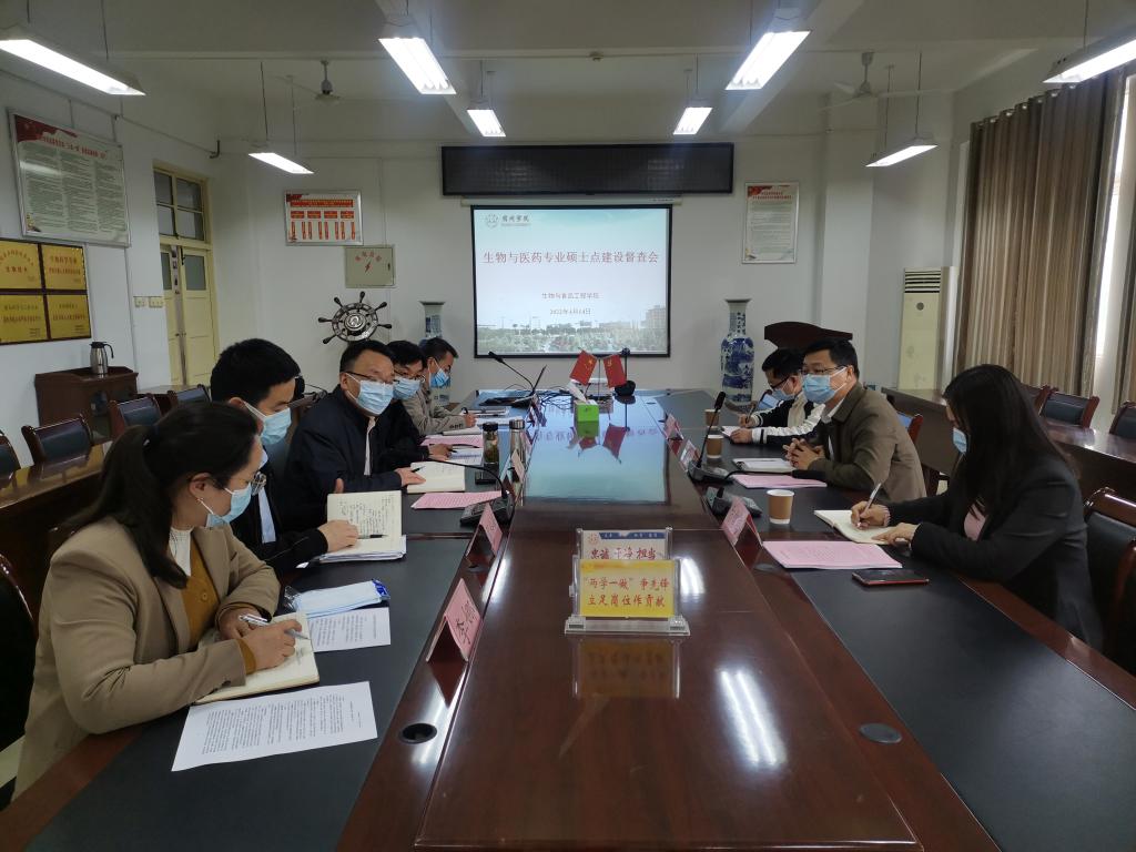 赵亮代表学院对校领导的到来表示热烈欢迎。翟科峰围绕生物与医药专业学位硕士点申请基本条件汇报了本硕士点的基本概况,目前的建设情况及目标达成度,主要从师资队伍、人才培养方案、培养环境与条件等方面进行了详细介绍,并深入分析了本硕士点目前存在的短板、弱项及困难。张兴桃汇报了学院围绕硕位点建设,在人才引进、项目立项、成果转化等方面开展的工作,存在的问题及下一步的工作举措。