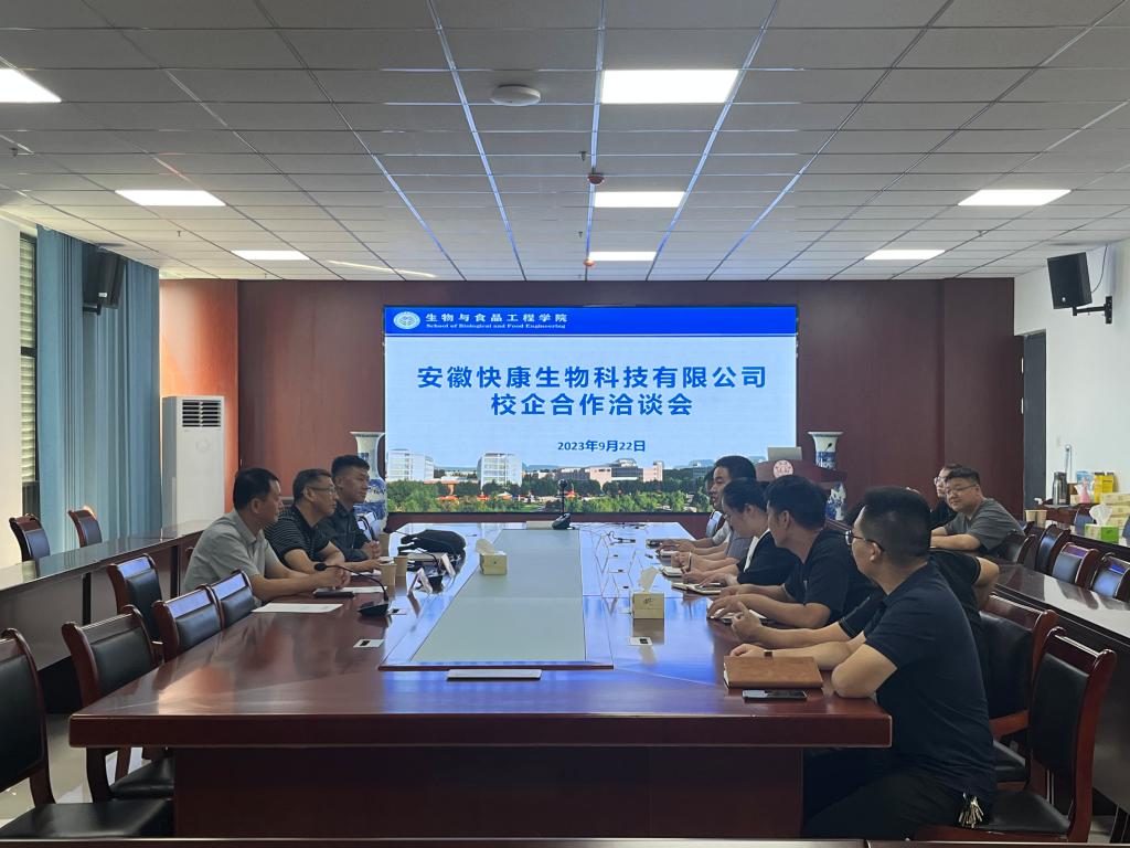 在暑期举办的宿州市“4510”校地联合科创行动县区(园区)行活动前期对接的基础上,2023年9月22日上午,泗县科技局副局长苗霖韬、安徽快康生物科技有限公司总经理罗军一行四人来伟德国际1946源自英国进行实地走访,并开展校企合作洽谈会,伟德国际1946源自英国副院长翟科峰,副院长王海潮,副书记李娜及部分博士教师和联合培养的研究生参加了此次洽谈会。