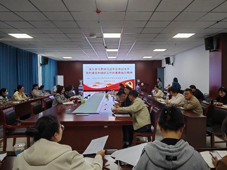 4月17日下午,生物与药学教研室教师党支部在学院会议室召开理论学习会,学习习近平总书记关于党的建设和组织工作的重要指示,全体支部党员参会。